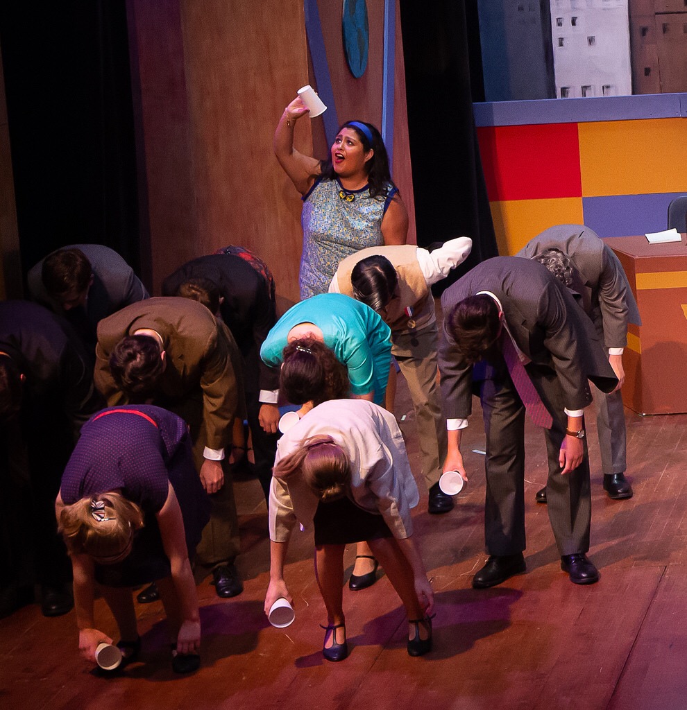 Last weekend I helped, just a little bit, with the set painting for the show my daughter is in – “How To Succeed in Business Without Really Trying”. It is being performed by Simsbury Summer Theater (SST) and my friend Leslie Mills is the set painter. She handles all of the amazing details including picking out the color palette and making the set look so professional. Alice and I were able to assist with the process by painting the larger objects; the background wall for the elevator and the chair rail to an office scene. It was fun and therapeutic…. and hard work! But most of all, it was awesome to be part of the creative process.